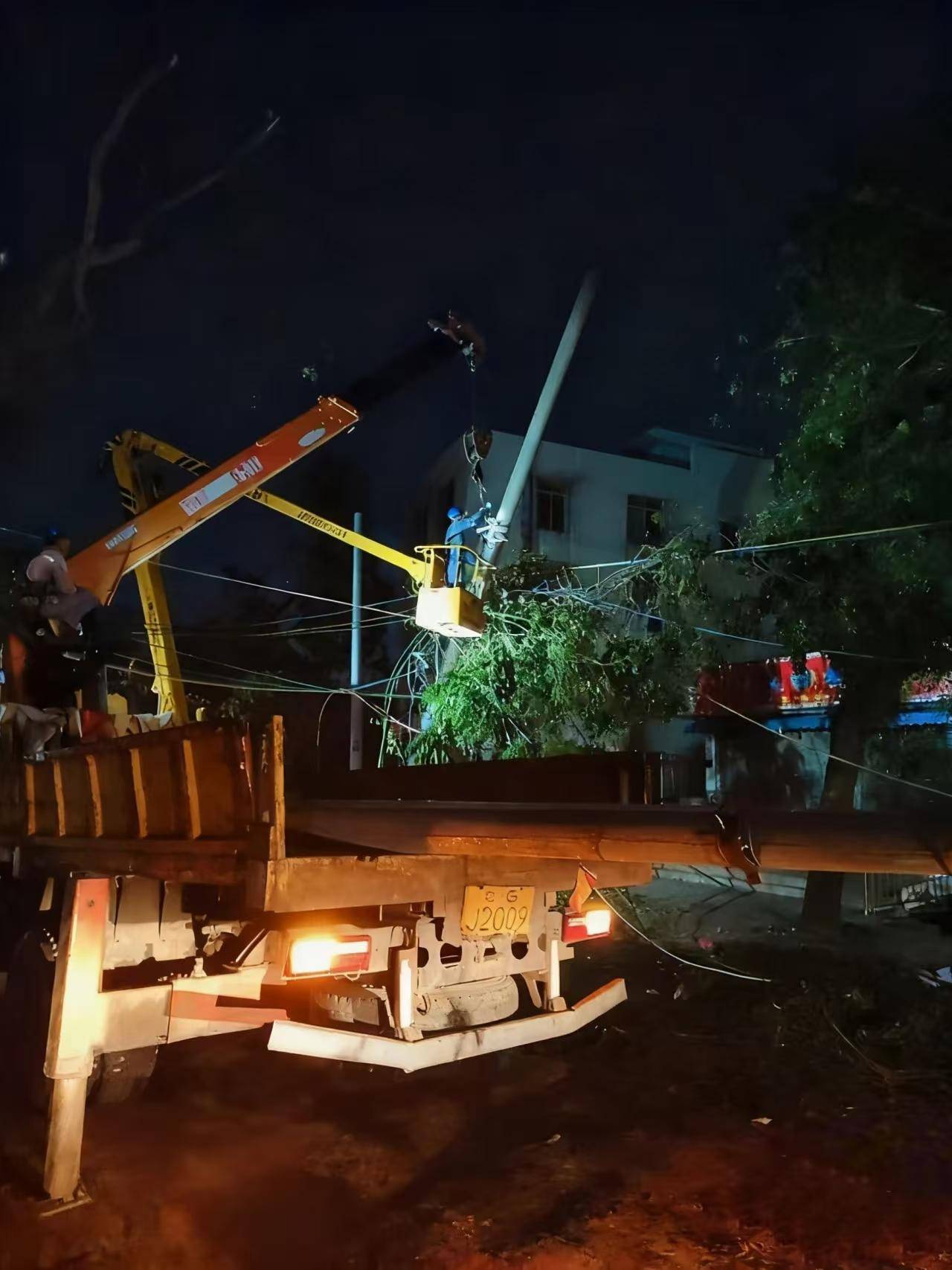 在这场台风中,湛江赤坎片区受内涝与树木倒伏双重影响,多条10千伏线路跳闸,部分老旧小区电杆倾斜、导线断裂。