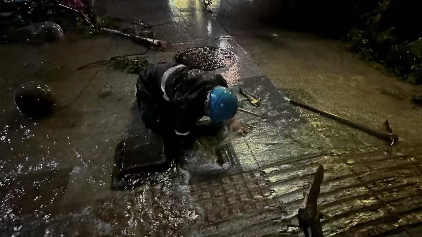 粤海水务抢修人员迅速奔赴现场,撬开被杂物覆盖的阀门井盖,凭借着丰富的工作经验,在浑浊的积水中摸索阀门轮盘,用尽全力一扣一扣地拧动,终于及时将其关闭。随后,他们在两个小时内完成了抢修。